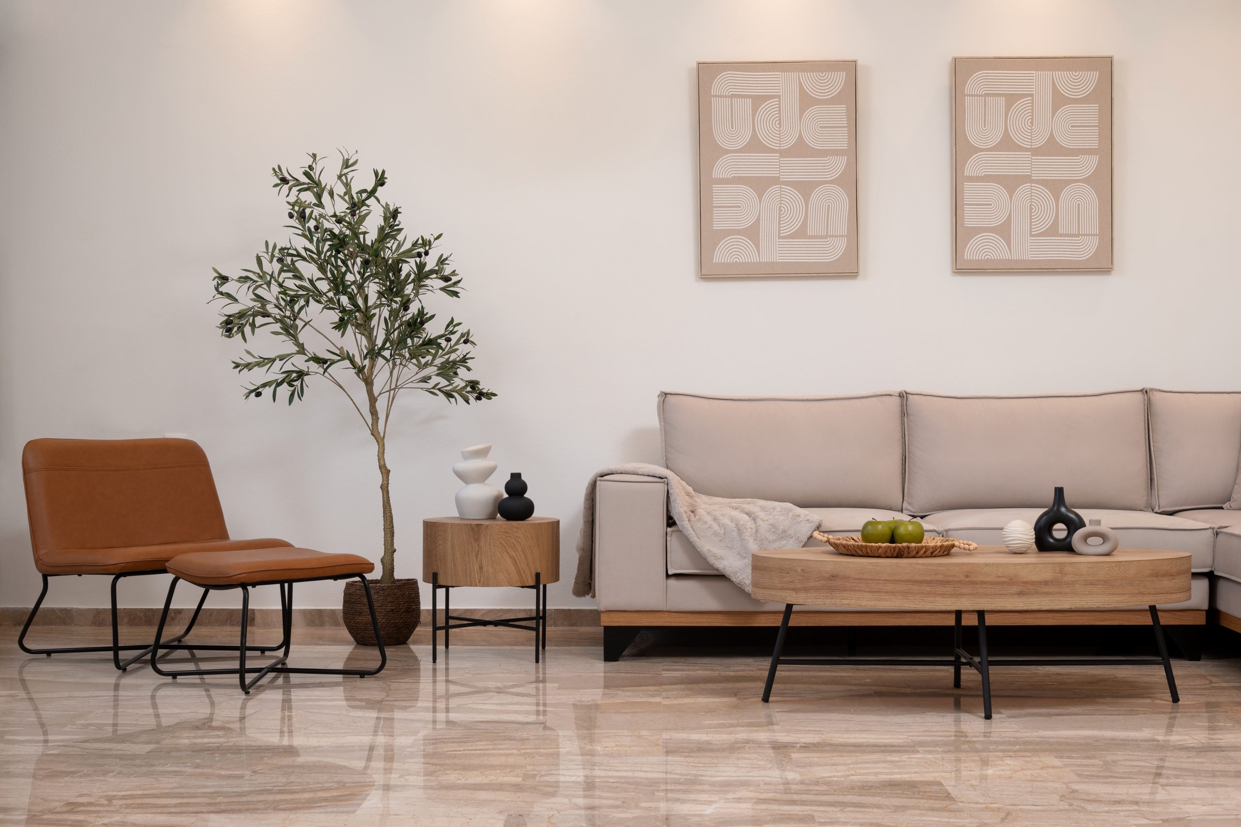 The bright, spacious, and modern living room features a large corner sofa that invites you to relax or unwind after a day of exploring.